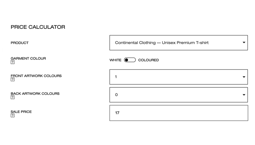 Put simply, the profit you make on a T-shirt sale will be the difference between the cost price (of producing the T-shirt) and the retail price (the price you decide to sell your T-shirt at). In order to make it as easy as possible for you to work out which price to go for, we’ve created our price calculator, a tool that lets you calculate how much profit you’ll make at different price points, with different types of artwork and garments.